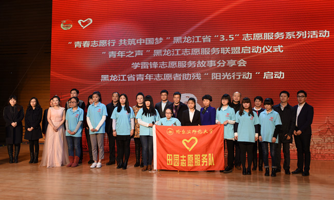(张博/文)3月4日,由共青团黑龙江省委主办,我校团委承办的“青春志愿行•共筑中国梦”黑龙江省“3•5”学雷锋志愿服务系列活动暨“青年之声”黑龙江志愿服务联盟启动仪式在我校江南音乐厅举行。团省委副书记王淑滨、学校党委副书记孙立军、“青年之声”志愿服务联盟导师代表、省直高校共青团相关部门负责同志以及我校师生代表参加了本次活动,活动由人民网黑龙江频道全程直播。