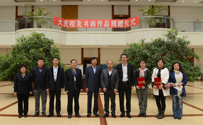 (庞春妍/文)5月6日上午,大庆校友书画作品捐赠仪式在我校图书馆举行。党委常委、副校长杨锐锋出席捐赠仪式。