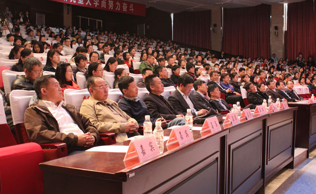 (白永/文)六十五年峥嵘岁月,六十五年辛勤耕耘。为庆祝哈尔滨师范大学六十五岁华诞,5月5日16时30分,教育科学学院“青春齐飞扬 共筑师大梦”迎校庆师生文艺演出活动在科学会堂举行。校党委副书记孙立军,党委常委、副校长杨锐锋,党委常委、副校长马明,党委常委、纪委书记郭加利,党委常委、副校长何晶,党委常委、组织部长刘柏清,党委常委、宣传部长郭崇林出席此次文艺演出活动。党委宣传部、学生工作处和兄弟单位的领导,以及教育科学学院党政领导和老师参加活动。