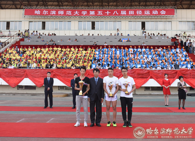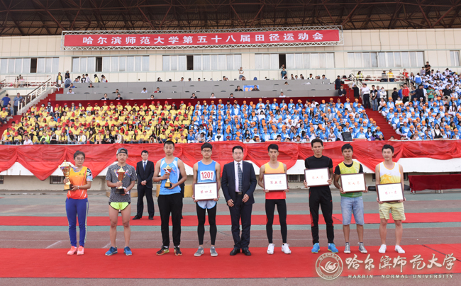图 党委常委、副校长马明为获得学生甲组男子团体前8名的单位颁奖