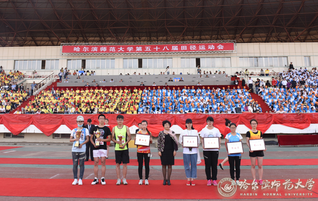 图 党委常委、副校长何晶为本届运动会上获得中小型舞蹈一、二、三等奖的单位颁奖
