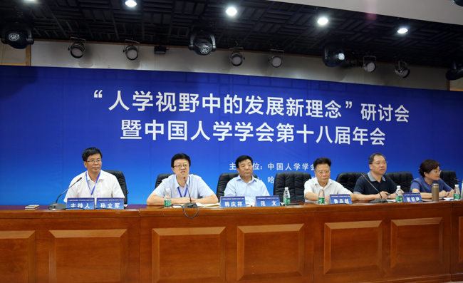 (翟屿潼/文)由中国人学学会主办,哈尔滨师范大学马克思主义学院、马克思主义理论学科承办的“人学视野中的发展新理念”研讨会暨中国人学学会第十八届年会于7月22—24日在我校梦溪宾馆举行。来自北京大学、中国社会科学院、中共中央党校、复旦大学、中国人民大学、武汉大学、北京师范大学等全国近60所高校的130多位专家学者与会,我校马克思主义学院教师、马克思主义理论学科部分人员参加了研讨会。黑龙江省委宣传部副部长刘光慧、我校党委书记出席开幕式并致辞,中国人学学会会长、北京大学哲学系丰子义教授就会议的主题和讨论的议题做全面阐释,我校原副校长、马克思主义理论学科带头人徐晓风教授主持开幕式,我校党委副书记孙立军教授主持了研讨会。