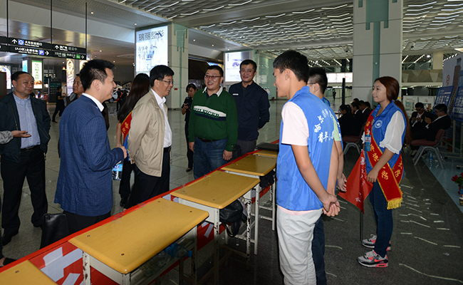 学校领导高度重视新生报到工作,党委书记,校长王选章,党委副书记孙立军,党委常委、副校长杨锐锋等学校领导走访慰问了2016级新生,并与工作人员亲切交谈,对大家在迎新工作中表现出来饱满的精神状态、良好的团队协作精神给予充分肯定,同时勉励所有工作人员再接再厉,圆满完成学校的迎新工作。