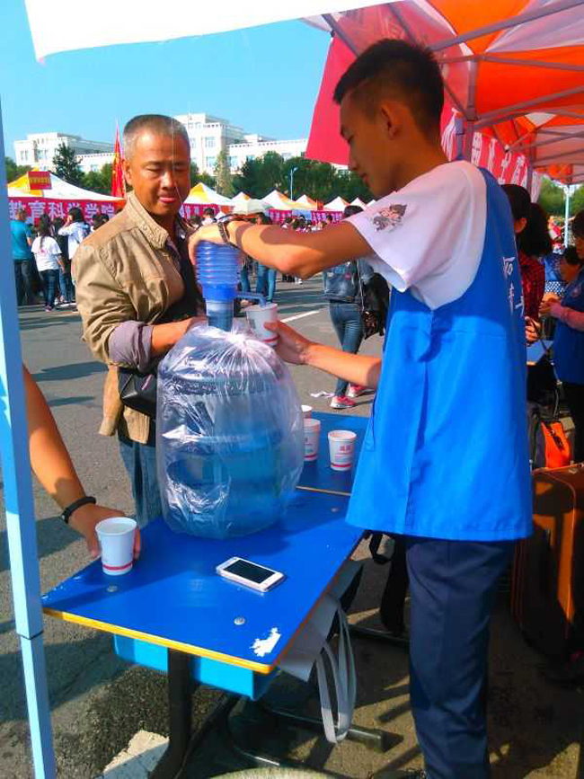 截止2016年9月4日下午四点,我校的迎新工作落下帷幕。从二号下午的细雨纷纷到四号早上的烈日炎炎,奔赴在迎新最前线的是我们可爱的志愿者们。他们早出晚归,不辞辛劳,顶着骄阳,行色匆匆。校园里,当新生不了解报到相关事宜时,志愿者耐心细致地为其讲解;当新生面对学校这个陌生的环境不知所向时,志愿者热情周到的为其指引方向。火车站里,他们高举着哈尔滨师范大学的的引导牌,引导着新生及家长走上校车,每天工作长达16个小时、累计发送迎新车辆90余趟、接送新生及家长达3000余人次,这些都是他们付出辛劳的勋章。他们设立的休息区、他们手中拿着的行李,无一不体现着志愿者体贴周到的服务。短短两天迎新志愿者的感人故事说不尽、道不完,迎新场地里穿梭的蓝色身影,无不成为哈师大校园里一抹最绚烂的色彩。