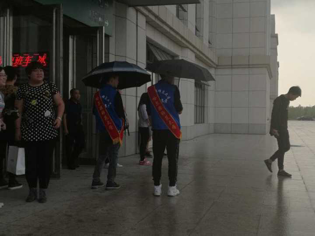 志愿者与大家风雨相随