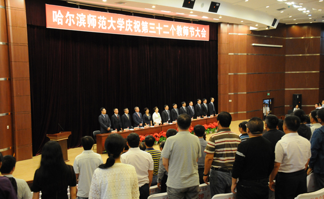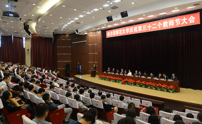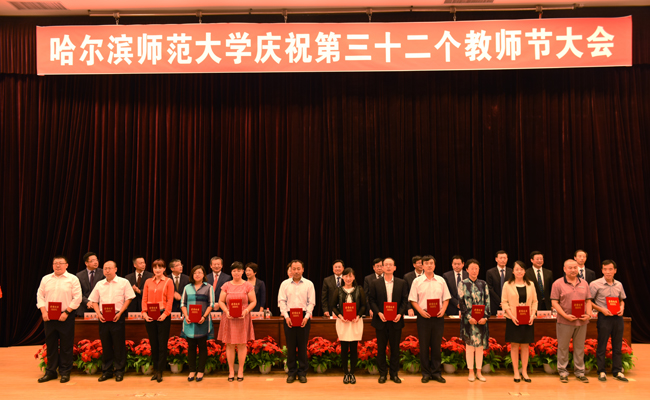 会上,校党委书记宣读了哈尔滨师范大学首届教师“奉献奖”获奖名单;副校长臧淑英宣读了第九届“哈尔滨师范大学教学名师奖”获奖教师名单、第七届“哈尔滨师范大学中青年教师优秀教学奖”获奖教师名单、2016年度“宁齐堃中青年教师课堂教学优秀奖”获奖教师名单;党委常委、副校长张喜田宣读了全国“第七届高等学校科学研究优秀成果奖”获奖名单、国家自然科学基金获得者名单、教育部人文社科基金获奖者名单;党委常委、工会主席赵科学宣读了2016年黑龙江省“五一”劳动奖章、“工人先锋号”获奖名单和哈尔滨师范大学2016年度先进集体、先进工作者获奖名单。伴随着欢快喜庆的音乐和全场师生热烈的庆祝掌声,学校领导为获奖单位和教师代表颁奖。