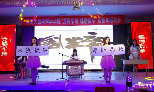 (王敬国/文)为展现青年大学生风采,营造文明健康的校园文化。12月21日下午,数学科学学院在梦溪宾馆一楼金色大厅举办了“龙腾华瑞,锦绣数学”迎新年联欢会,校党委副书记蒋晶洁,党委副书记孙立军,副校长臧淑英,纪委书记郭加利,党委常委、党委宣传部长郭崇林,党委常委、党委办公室主任徐德荣,以及校长办公室、学生工作部(学生处)领导等莅临现场,数学科学学院党政领导、全体政工干部、师生代表人400多人参加了联欢会。
