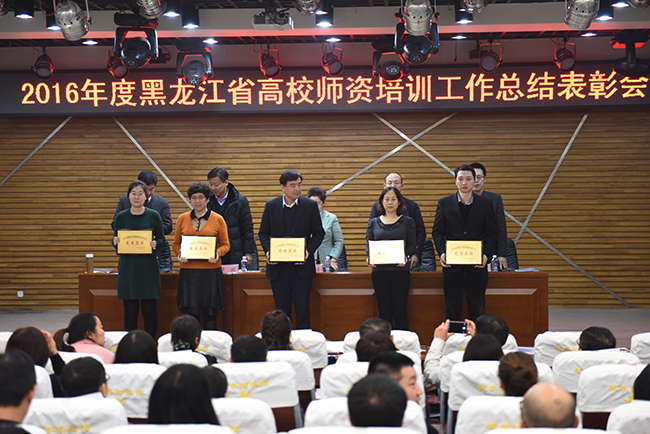 (钱正龙/文)1月5日,2016年度黑龙江省高校师资培训工作总结表彰会在我校梦溪宾馆二楼报告厅召开。我校党委副书记蒋晶洁,省教育厅职成处处长丁哲学,省教育厅高教处处长蒋琨、副处长王跃然出席会议。会议由省高师培训中心常务副主任梁大战主持。