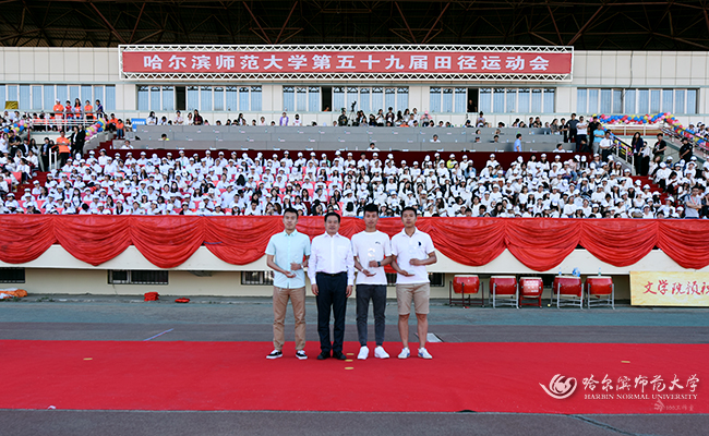 图 党委常委、宣传部长郭崇林为学校体育工作先进单位颁奖