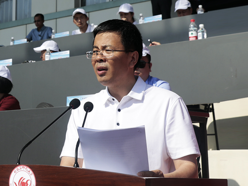 孙立军指出,体育运动是世人了解一所大学的重要窗口。我校确立了建设“国内一流师范大学”的发展目标。一流师范大学就要有一流的体育教育、一流的体育项目和一流的体育文化。体育事业的蓬勃发展为我校国内一流师范大学建设提供了有力支撑和保障。一年一度的田径运动会既是对学校群众性体育工作成果的一次大检验,也是对广大师生员工竞争意识、团队精神、顽强意志的一次大考验,更是全校各单位精神风貌的一次全面展示。孙立军希望全体运动员在本次运动会上赛出水平,赛出风尚,赛出团结和友谊,努力实现运动成绩和精神文明的双丰收,希望全校师生能够不断延续在赛场上展现出的拼搏精神和团队力量,进一步增强责任感、使命感和荣誉感,在学校深化综合改革进程中,不断推动学校实现内涵式发展和特色发展,为早日把我校建设成为国内一流师范大学,做出新的更大的贡献!