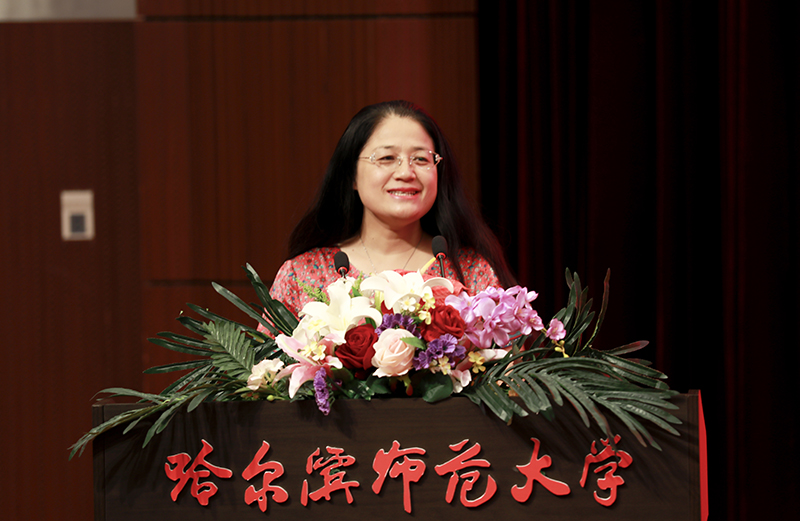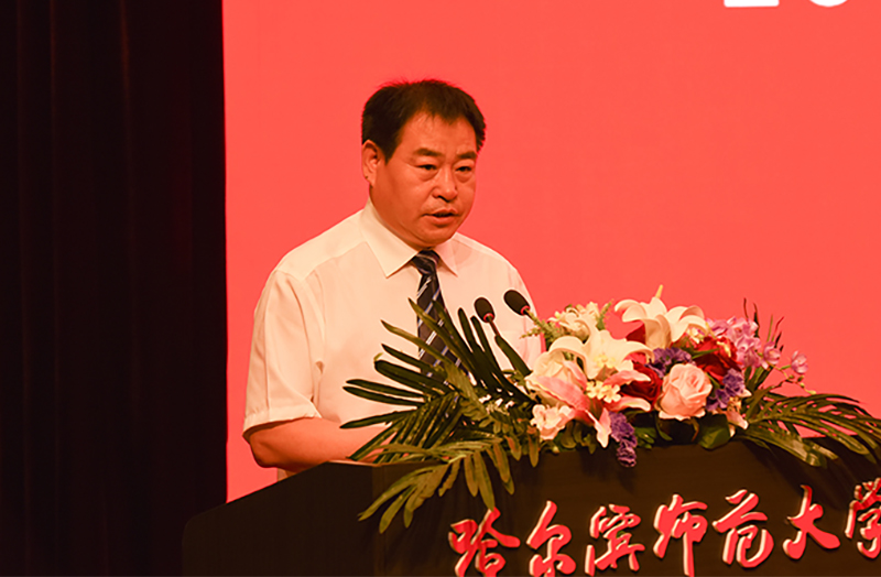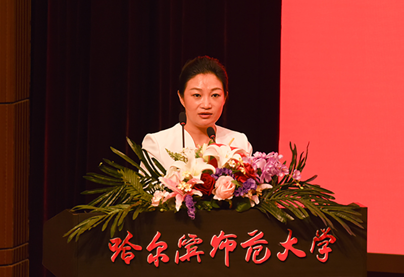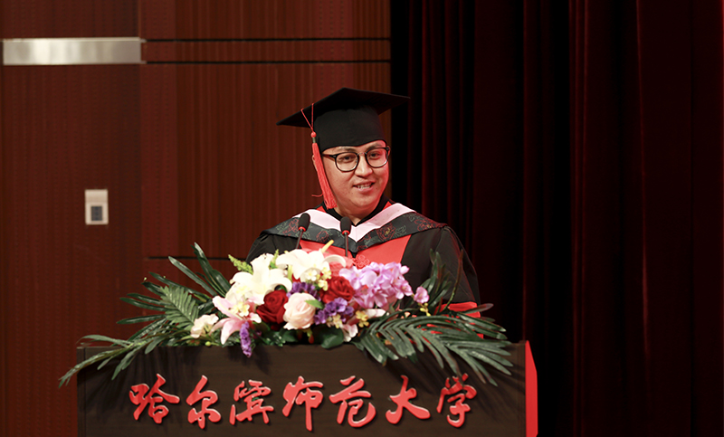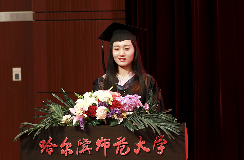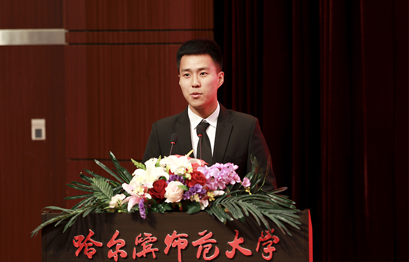教师代表、国家“国家级人才项目入选者”教学名师、享受国务院特殊津贴专家、博士研究生导师、斯拉夫语学院院长赵秋野,校友代表、哈尔滨市第三中学校长、高级教师、享受省政府特殊津贴专家、我校92届历史系毕业生王明伟,毕业生代表、全国大学生语文微课教学大赛特等奖获得者张琪,毕业生留学生代表、教育科学学院教育经济与管理专业博士、老挝人民民主共和国李国明,在校生代表、黑龙江省学联主席、校第十八届学生委员会主席吴桐分别在会上发言。