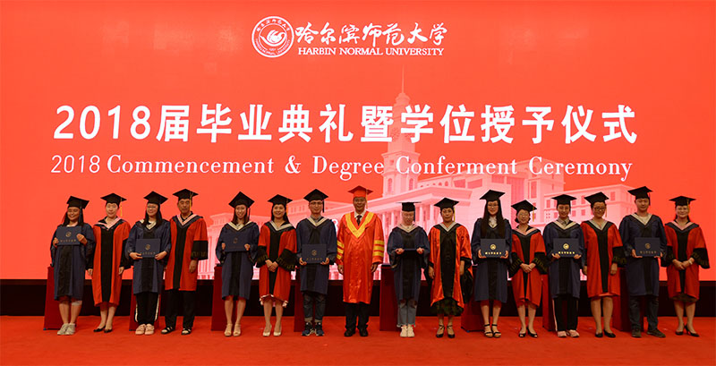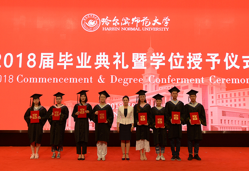 韶华流转,光阴如斯。在这芳华吐露、离歌吟奏的六月,我们在这里隆重举行哈尔滨师范大学2018届毕业典礼暨学位授予仪式,为同学们拨穗正冠,为你们的青春加冕。首先,我代表全校师生员工,向你们顺利完成学业致以最热烈的祝贺!