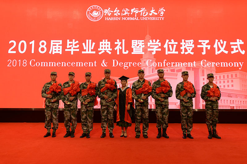 最后,现场全体师生高唱《哈尔滨师范大学校歌》,2018届毕业生毕业典礼暨学位授予仪式在歌声中落下帷幕。