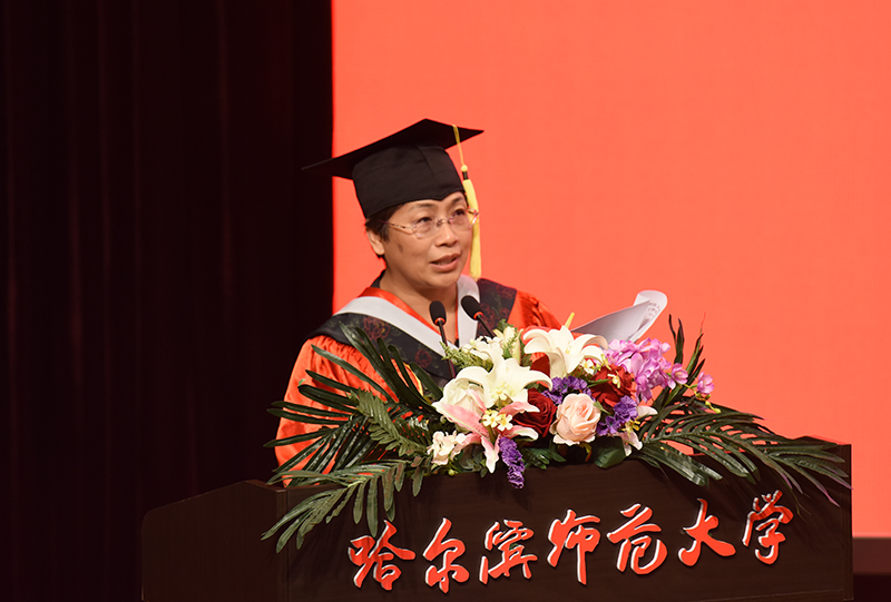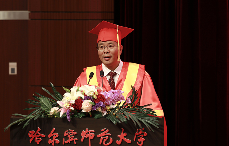 从今天开始,你们再也不用通宵赶论文,再也不用紧张地准备考试、答辩了。然而,往事并不如烟。军训会操,你们在烈日下磨练意志;运动会上,你们为集体荣誉挥汗如雨;艺术节里,你们在舞台上尽展风采;志愿服务中,你们在奉献里传递爱心。教室、实验室和图书馆里,留下了你们的刻苦与执着;行知广场、梦溪湖畔,留下了你们的豪情与风姿。师大数年,你们为理想而奋斗,为未来而拼搏;师大数年,你们与母校共同经历,共同成长。因你们的助力支持,学校顺利通过了教育部本科教学工作审核评估,并得到教育部专家组的高度评价;因你们的期待企盼,学校去年一举获得6个一级学科博士点,一级学科博士点数量达到了9个,实现了历史性飞跃;因你们的身体力行,学校荣膺首届“全国文明校园”,成为全国39所入选高校之一,黑龙江省唯一入选的大学……。同学们,你们的青春已经融入哈师大历史,你们的故事已经化为哈师大精神,“敦品励学,弘毅致远”的校训精神已经成为你们永久的烙印。今天,我们在这里由衷祝贺你们圆满完成学业的同时,更为你们在哈师大实现人格塑造和境界提升而感到欣慰和喜悦!