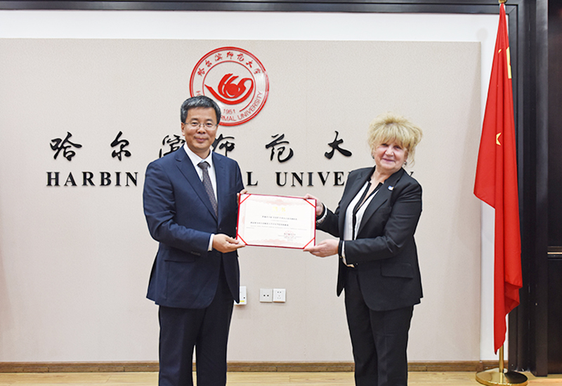 图 校长孙立军为柴可夫斯基音乐学院副院长拉丽萨·斯鲁茨卡娅颁发客座教授聘书