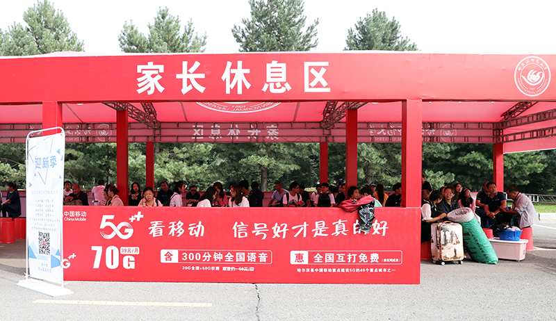 虽然进入了九月,但炎热不输盛夏。学校特意设了家长休息区,给辛苦陪伴孩子报道的家长们递一杯水,带去一片凉荫。