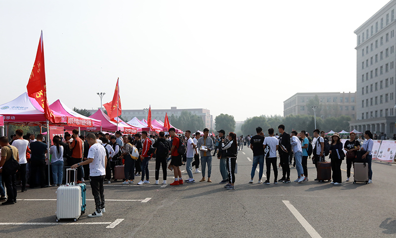 人潮中,随处可见的是志愿者的身影:晨雾未散,他们已经开始布置迎新现场;烈日当空,他们陪伴萌新从报到注册到入住寝室,不辞劳苦,不计回报。