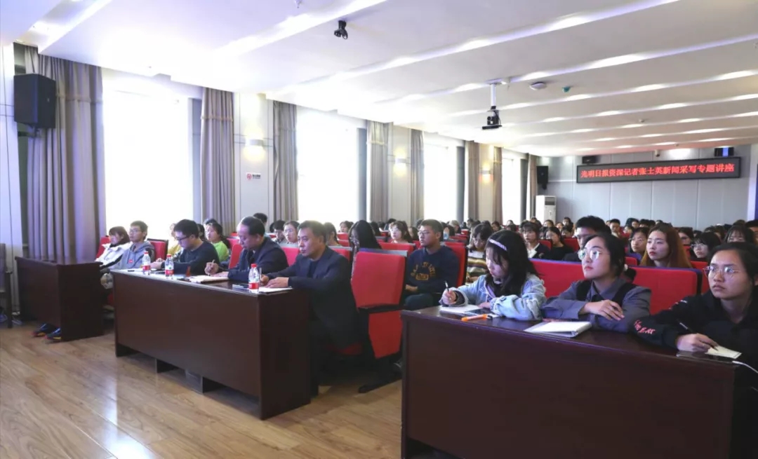 (周文凯/文)10月29日下午,我校教育系优秀毕业生、《光明日报》驻黑龙江记者站资深记者张士英应邀在行知楼746会议室,以“像调查记者一样去写作”为题作了一场专题讲座。校党委常委、宣传部长姜玉洪主持讲座。大学生新媒体中心(100工作室)、校报记者团成员以及各单位通讯员听取讲座。