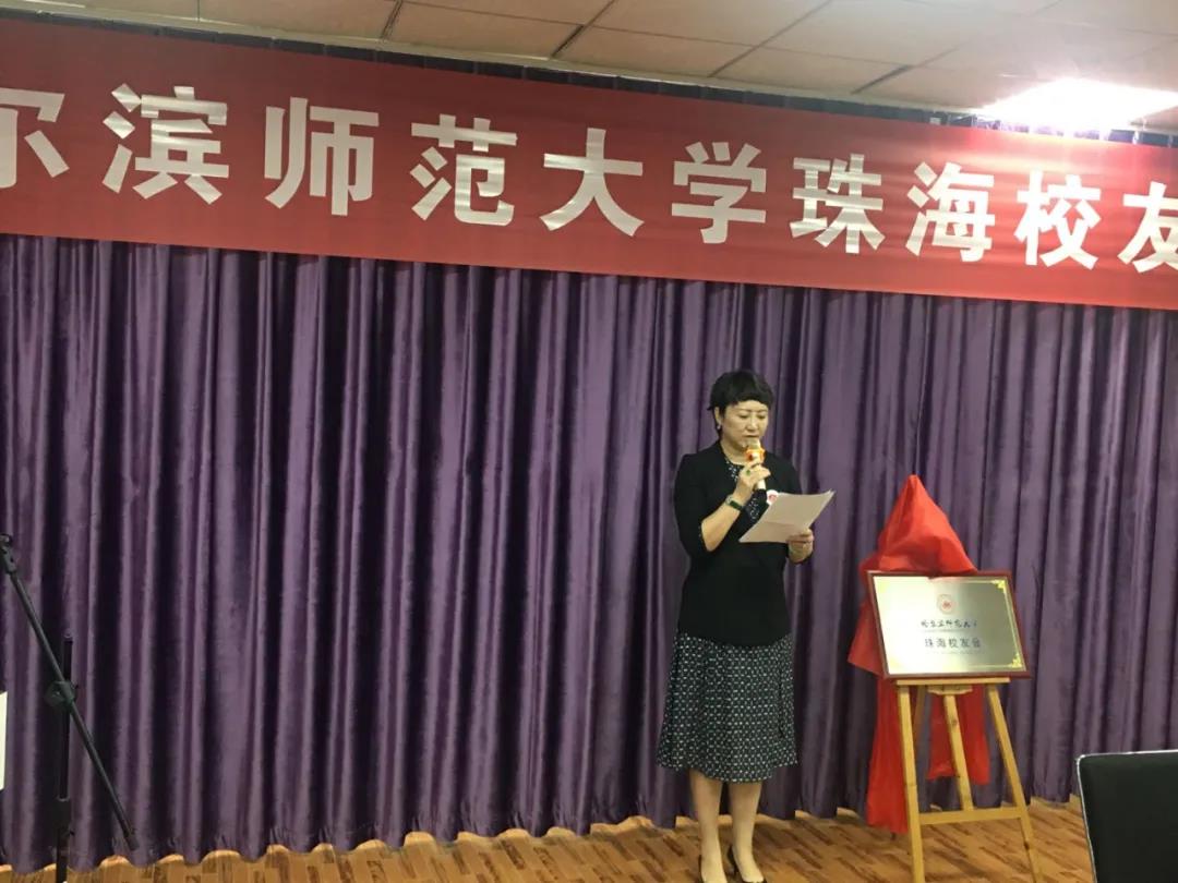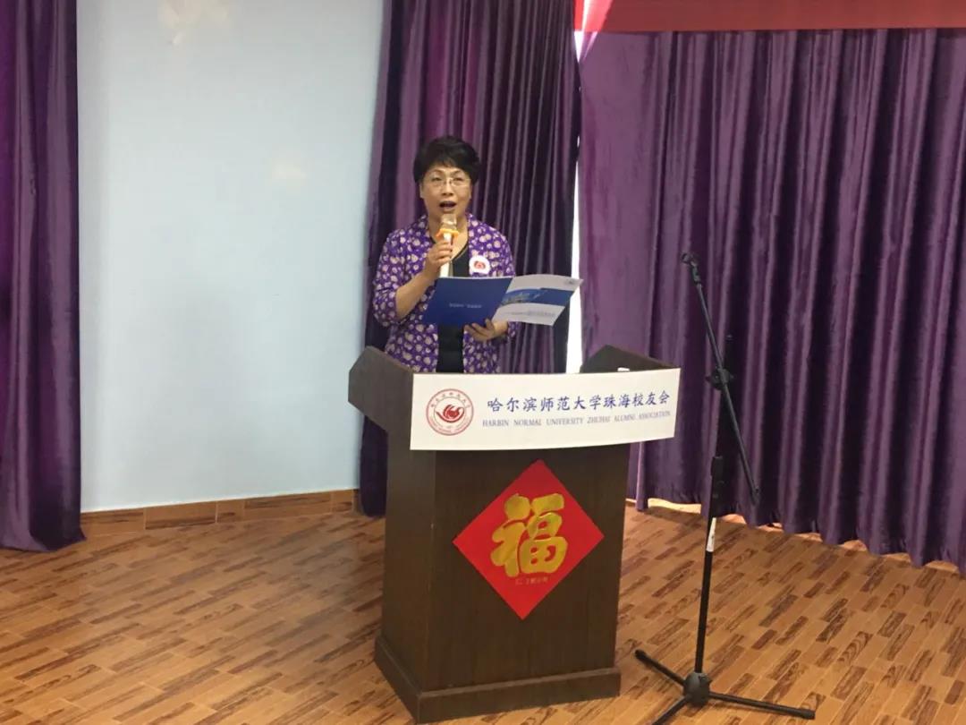 臧淑英在会上宣读了哈尔滨师范大学校友总会贺信,向珠海校友会成立表示祝贺,向珠海地区校友致以亲切地问候和良好的祝愿。希望珠海校友会在今后的工作中心怀母校,团结珠海地区校友,助推哈师大校友工作蓬勃发展,共商母校发展大计,为地方经济和社会发展作出更大贡献。同时,通过共同努力,使珠海校友会成为校地合作共赢的桥梁,成为母校与校友情感联系的纽带。