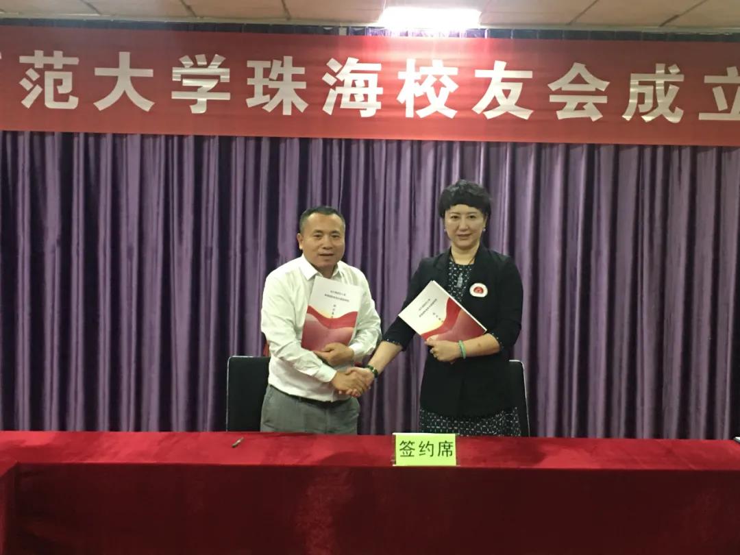 最后,为助力母校建设和校友事业发展,臧淑英代表学校为珠海市国际商务外国语学院授“哈尔滨师范大学继续教育合作办学基地”牌匾,谷艾琳与韩方立签订了毕业生就业基地合作协议。