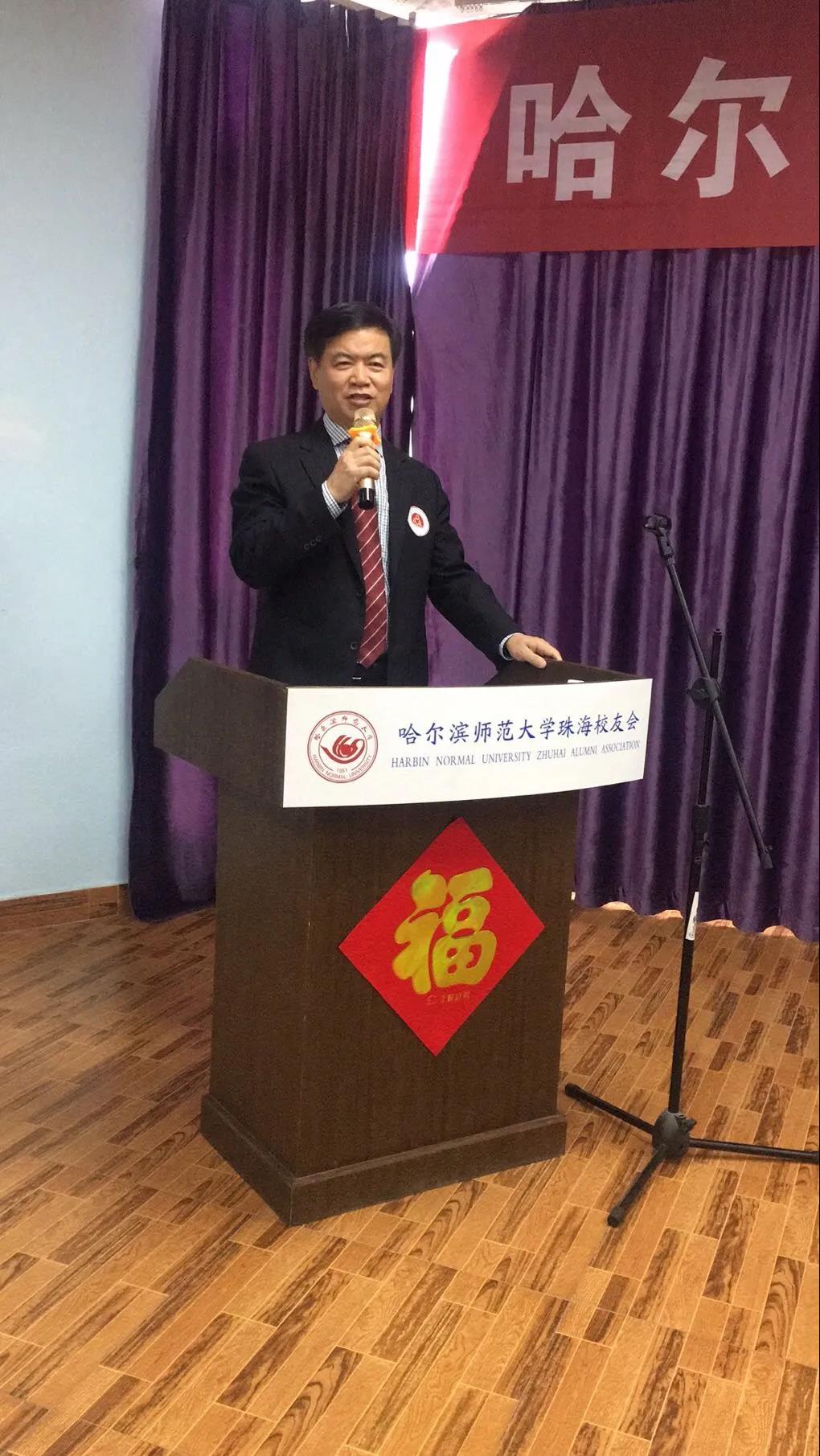 党委书记在讲话时,向校友们介绍了学校发展建设取得的成绩。他指出,七十年来,哈尔滨师范大学风雨兼程,砥砺前行,呕心沥血,哺育英才,广大校友在各个行业有着卓越的成就和非凡的贡献,彰显了母校教育教学辉煌成就。珠海校友会的成立让广大珠海校友有了寄托情思、联络感情的平台。希望广大珠海校友,能够把珠海校友会打造成一个真正团结校友、服务校友、帮助校友的校友之家;能够积极发挥沟通母校与校友的交流作用,发挥母校温暖校友的传情作用,发挥促进校友自身发展的助推作用,使母校与校友在感情和事业上联系得更加紧密,为母校与校友开展交流合作提供资源支撑和组织保障;希望进一步增进学校与校友及校友之间的情谊,凝聚校友力量,以情感为纽带,以活动为载体,站在新的历史起点上共同推动学校的建设与发展,为哈师大争创国内一流师范大学事业添砖加瓦。他诚挚邀请各位校友于今年五月八日回到母校参加70周年校庆活动。