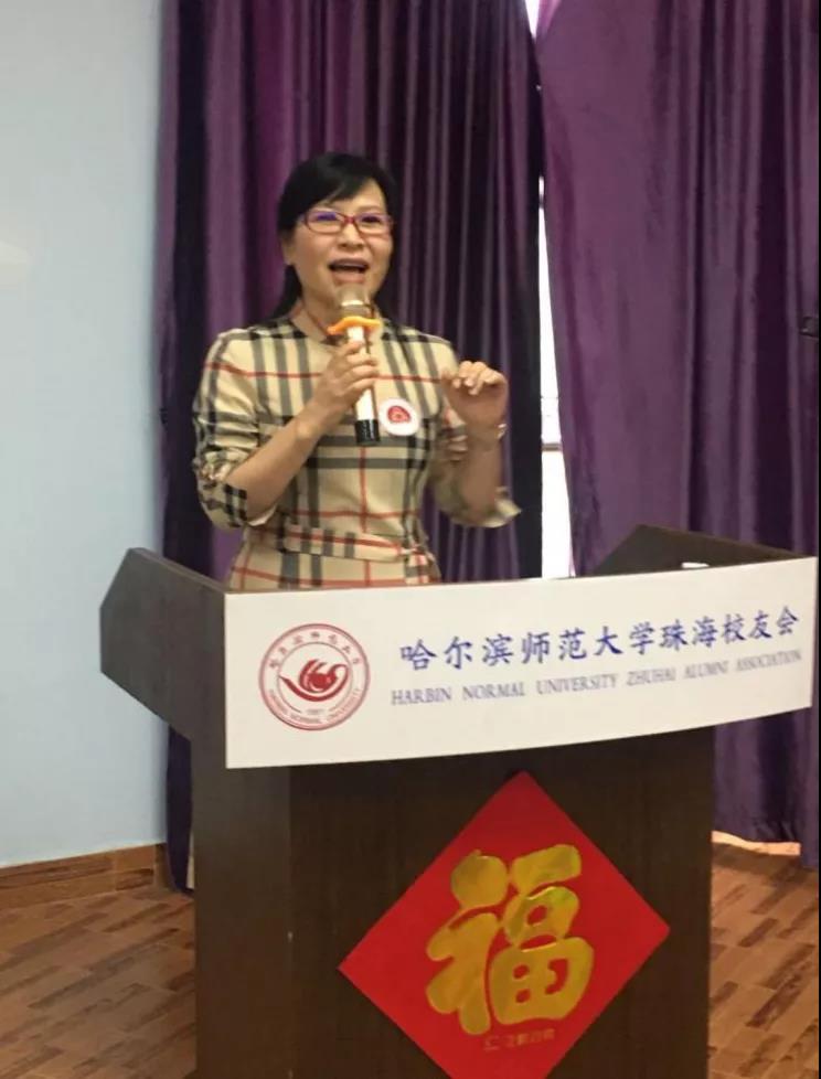谷艾琳在讲话时表示,珠海校友会的成立,对于增强珠海校友的凝聚力、开拓校友会发展新篇章具有深远的意义。希望珠海校友们能升华爱校之情,以会为家,团结合作,凝神聚力,以哈师大人的姿态,在党和国家事业发展过程中贡献磅礴之力。珠海校友会今后将认真履行校友会章程所赋予的职责和义务,创新工作思路,不断开创校友工作新局面。以校友为本,以服务为先,在当前母校争创国内一流师范大学的征程中,珠海校友会将全力提供支持。同时祝福母校70周年生日快乐,祝愿母校在未来的发展中取得更多喜人成绩,为党和国家培养更多精英人才。