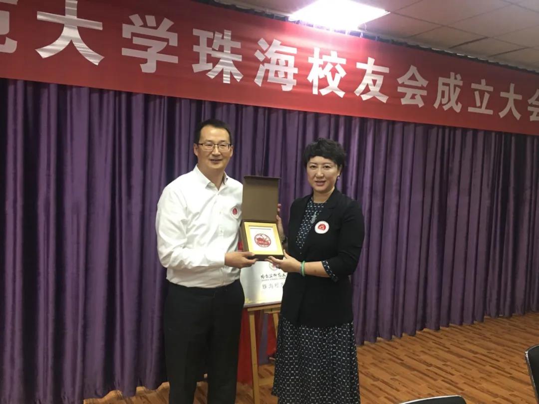 随后,宿建和玄甲友分别代表学校校友总会与学校深港澳校友会为珠海校友会赠送纪念品。