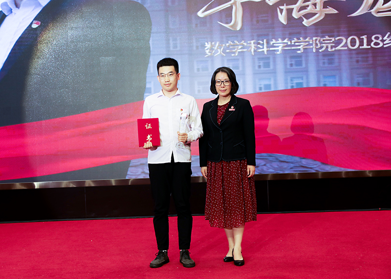 图 党委副书记、工会主席郭砾为感动校园十佳大学生个人颁发获奖证书和奖杯