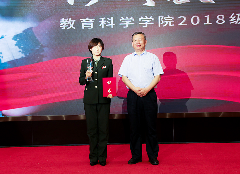 图 校党委书记、校长孙立军为哈尔滨师范大学退役军人协会(特别荣誉奖)颁发获奖证书和奖杯