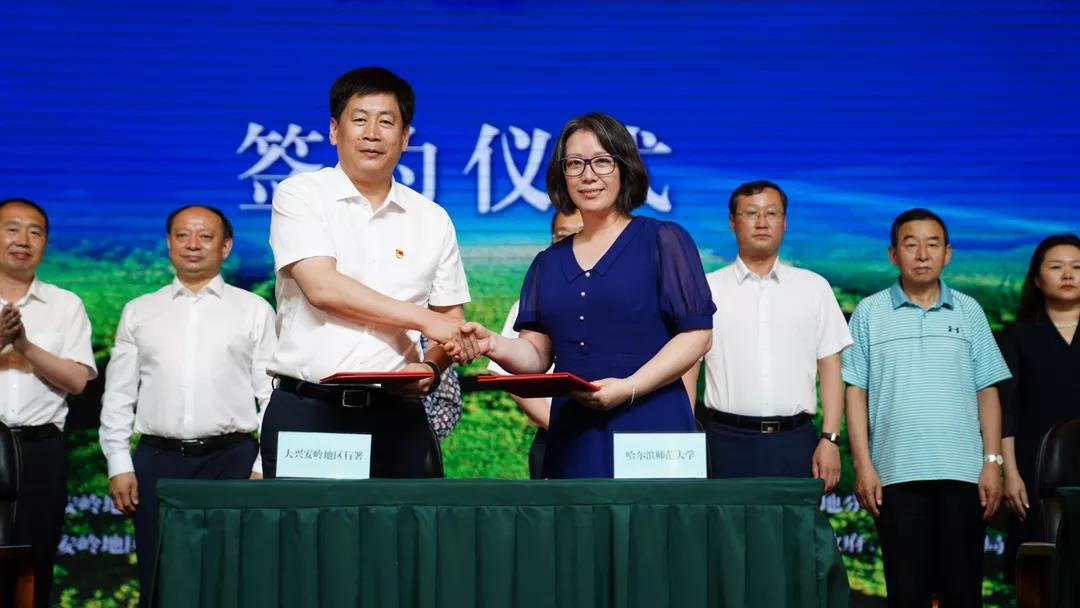 图 我校党委副书记、工会主席郭砾与大兴安岭地区行署副专员孙亮签订战略合作意向协议