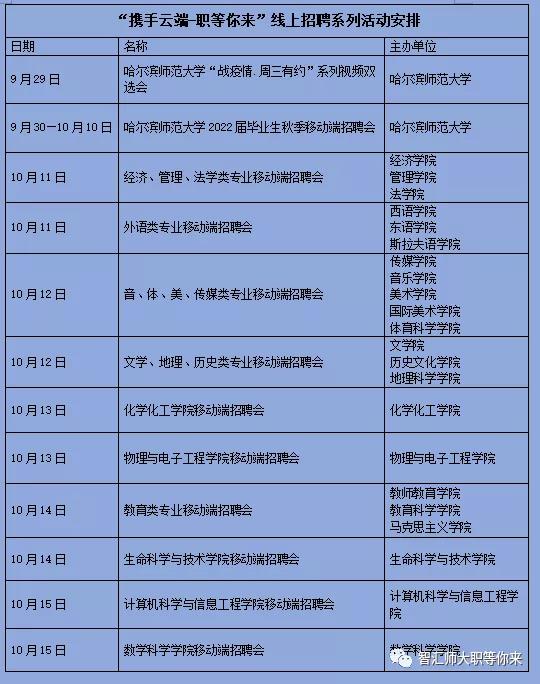 更多招聘活动信息请关注哈师大就业