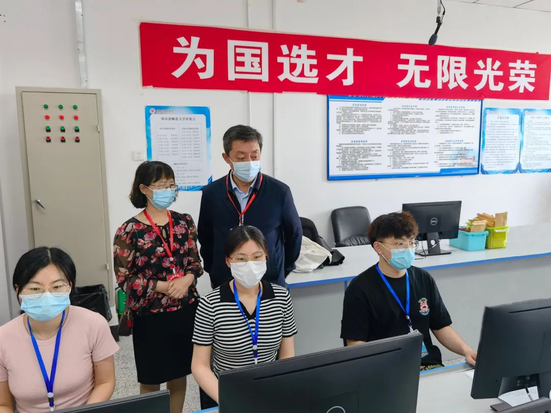 (马静岩/文)6月12日上午,省招考院党委书记、院长李石,省招考院党委委员、副院长强添纲一行到我校检查指导高考评卷工作,看望慰问评卷教师及工作人员。学校党委副书记李庆霞,教务处及各评卷学科负责同志陪同检查。