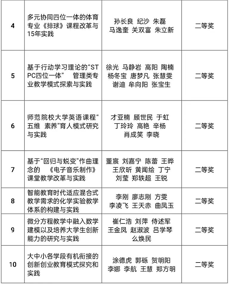 高等教育教学成果获奖名单