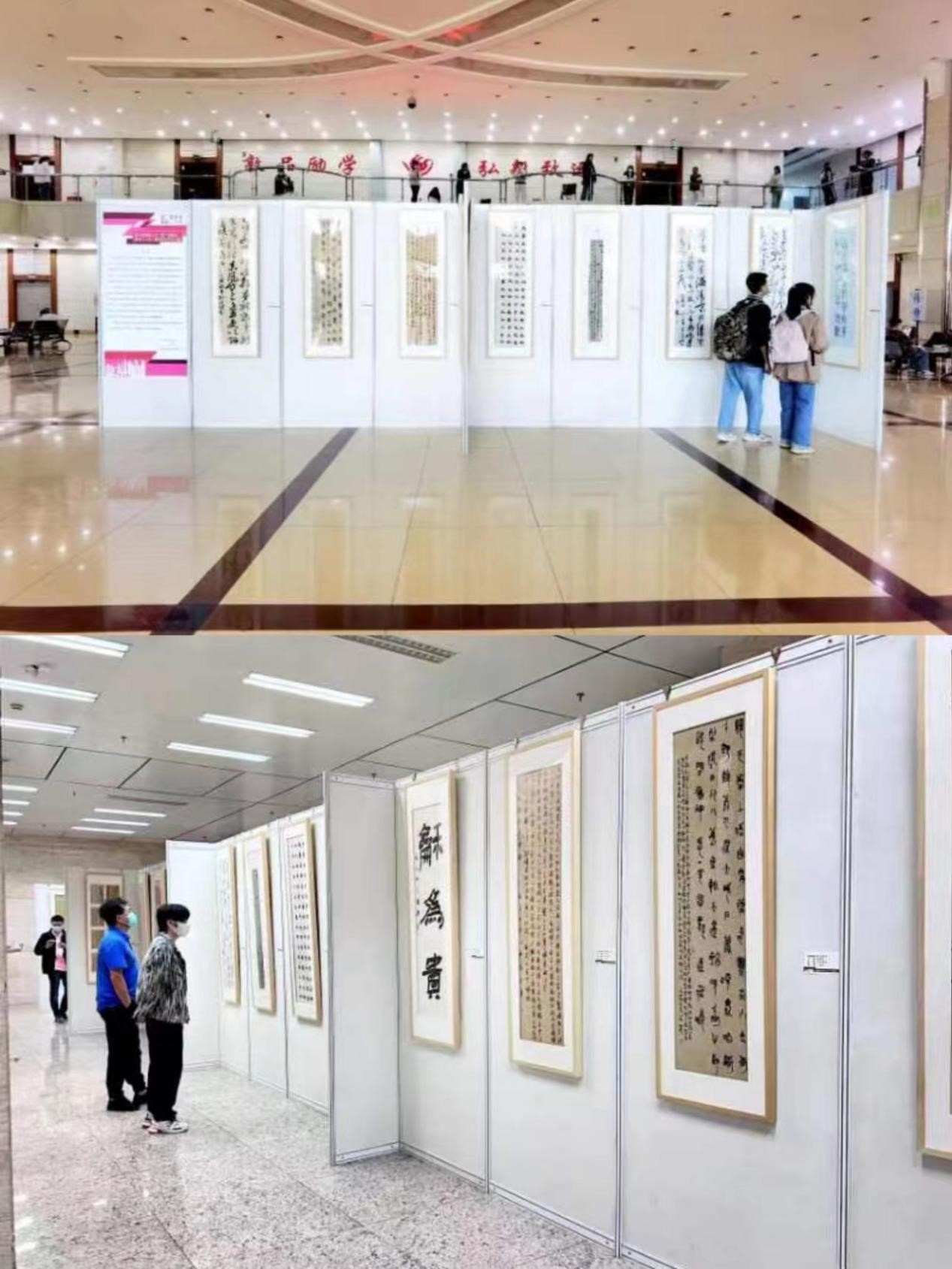 同时,学校举办“推广普通话喜迎二十大”暨规范字书写大赛。比赛面向全校本科生、研究生广泛征稿,共收到作品284件,聘请专业评委严格把关,分别评选出专业硬笔组获奖作品9件,优秀作品9件;专业软笔组获奖作品35件,优秀作品16件;非专业硬笔组获奖作品18件,优秀作品5件;非专业软笔组获奖作品9件,优秀作品8件。充分体现我校学生书法创作的高水准,展现新时代大学生的文化气质与精神内涵。笔墨书青春,筑梦新时代,以特有的方式向党的二十大献礼、迎接党的二十大召开。获奖作品分别在行知楼和图书馆展出,一等奖作品被图书馆永久收藏,并颁发证书。