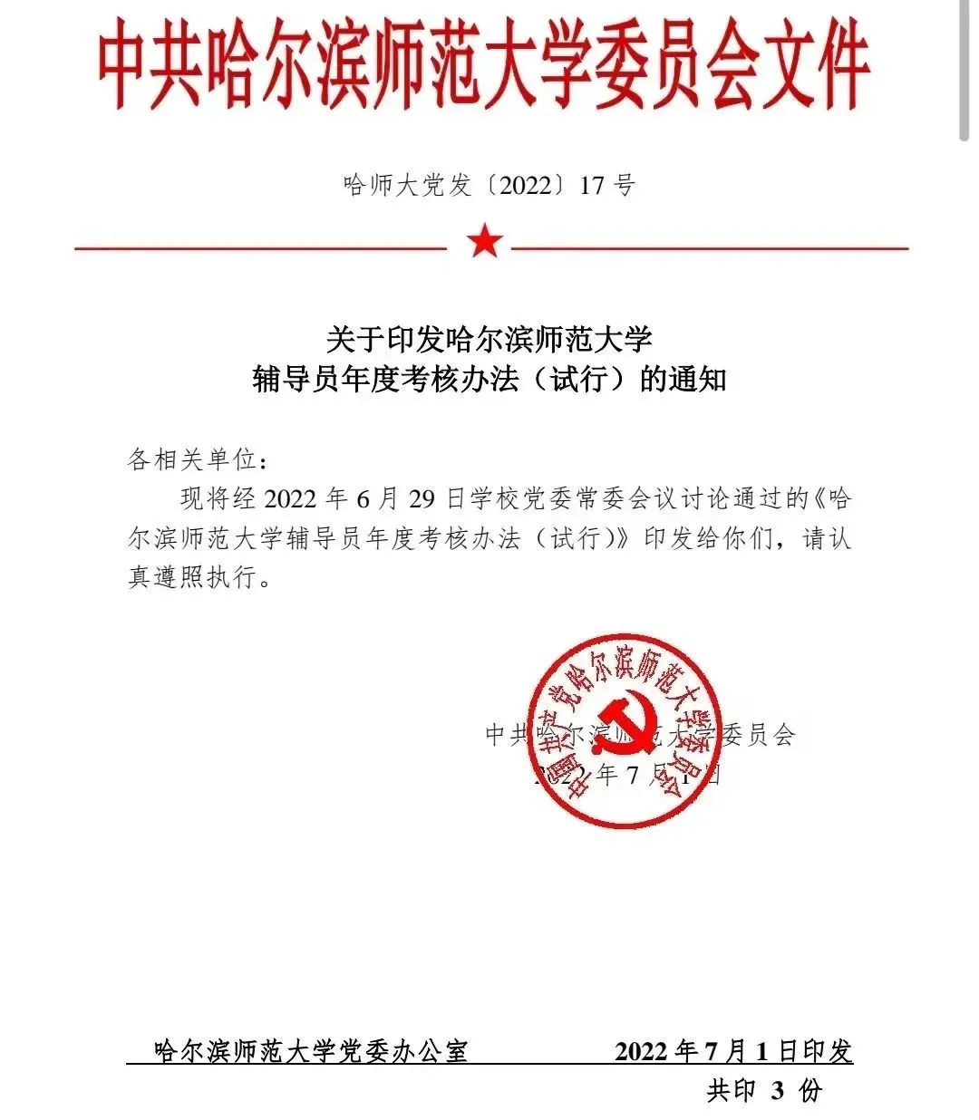 制度平台有保障。学校出台了《辅导员队伍建设办法》《辅导员系列中高级专业技术职务评聘办法》《哈尔滨师范大学辅导员年度考核办法(试行)》等文件,为辅导员队伍的职业化、专业化发展提供制度保障。近两年,学校高质量建成“辅导员之家”和“辅导员名师工作室”,为辅导员互动交流研究提供平台。学校高位推进辅导员名师工作室建设,建设了2个省级辅导员名师工作室,6个校级辅导员名师工作室,以点带面、以老带新,加强各领域的专业研究,全方位促进辅导员队伍能力素质的整体提升。2019年,学校创新制定实施《辅导员素质能力提升三年内训行动计划(2019-2021)》,着力提高辅导员的工作能力和水平,目前已经开始实施第二轮“三年内训行动计划”。