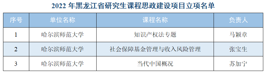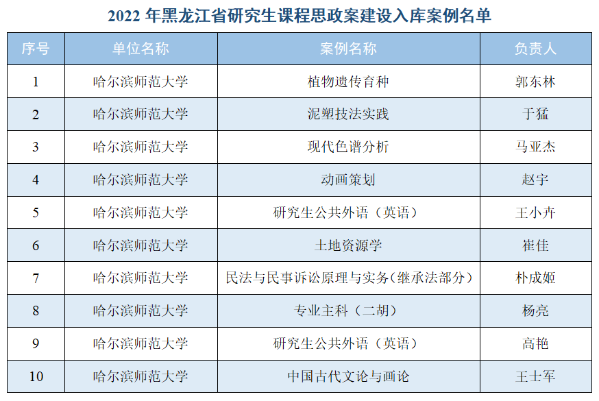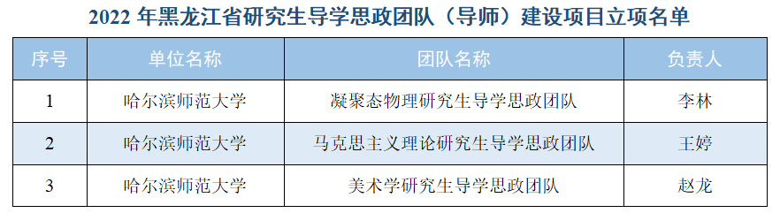 (孟威/文)日前,黑龙江省学位委员会和省教育厅公布了2022年黑龙江省研究生课程思政高质量建设项目评审结果,我校有17个项目获批立项,其中研究生课程思政教学研究中心建设项目1个、研究生课程思政课程建设项目3个、研究生导学思政团队(导师)建设项目3个、研究生课程思政案例建设入库案例10个。