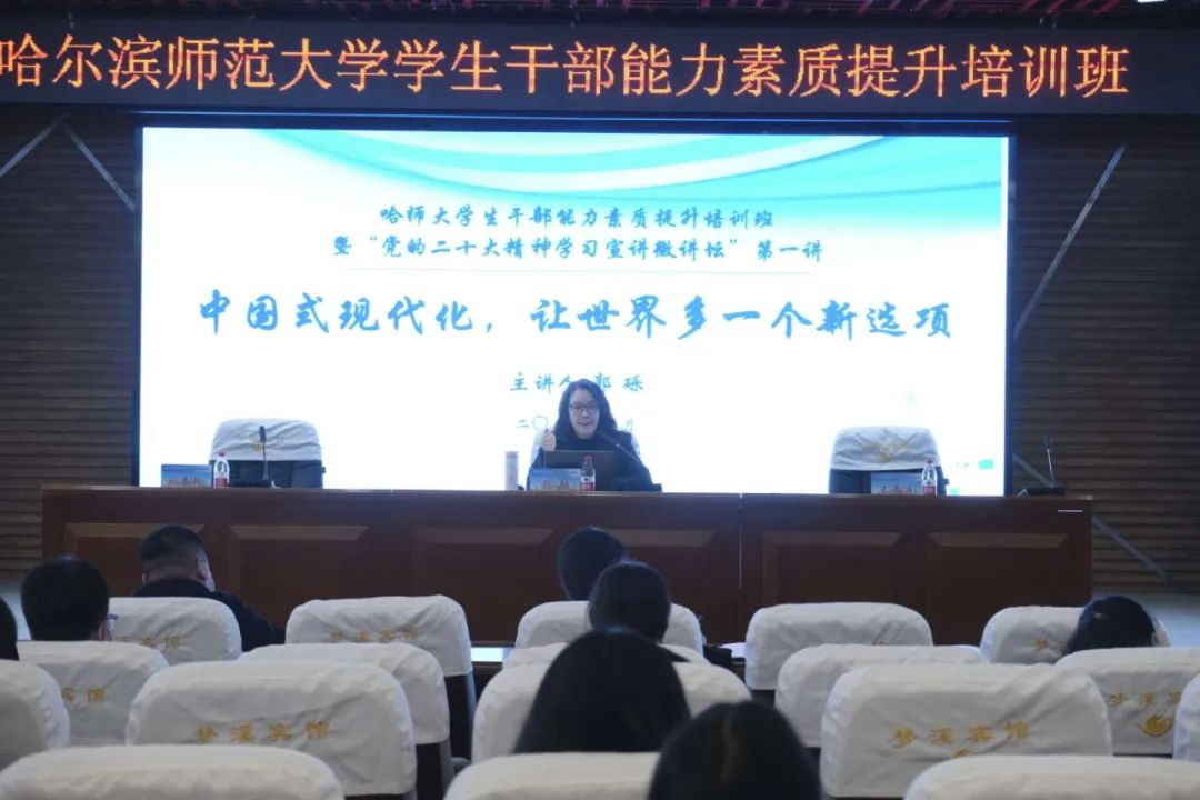 开班式后,郭砾为全体参训学员做了题为《中国式现代化,让世界多一个新选项》的专题辅导讲座,讲座围绕“什么是‘中国式现代化’?为什么是‘中国式现代化’?‘中国式现代化’,世界的新选项新在哪里?”三个方面展开,对中国式现代化5个特征、9项本质要求做了深刻解读,指出中国式现代化是物质现代化、制度现代化和人的现代化三位一体,中国式现代化道路打破了三大迷思,给世界上既希望加快发展又希望保持自身独立性的后发国家拓展了现代化新路径,为人类实现现代化提供了新选择。充分证明人类通向现代化道路不是单一的,现代化模式更不是独一无二的,适合自己的现代化,一定是从本国的土壤中长出来的。专题讲座为全体学员准确认识、把握“中国式现代化”提供了重要借鉴和宝贵指导。