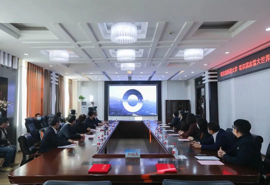 (赵鹤/文)11月17日上午,哈尔滨师范大学与哈尔滨冰雪大世界股份有限公司校企产学研合作签约暨创意设计实践中心揭牌仪式在我校行知楼915室举行。校党委书记孙立军,党委副书记、工会主席郭砾,哈尔滨市委宣传部副部长于丽,哈尔滨市文化广电和旅游局党组书记、局长王洪新,哈尔滨太阳岛集团有限公司党委书记、董事长孔庆滨,哈尔滨太阳岛集团副总经理、哈尔滨冰雪大世界公司党委书记、董事长郭宏伟及相关学院党委书记、院长、教师代表出席仪式。仪式由校党委宣传部部长张艳君主持。