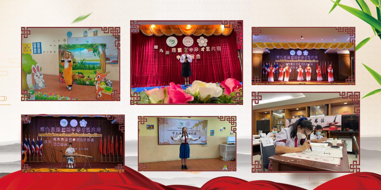 经过选手们激烈的角逐,最终来自东英学校的宋萍获得中国古典乐器的一等奖;来自北榄培华学校的马英文、公立文益学校的秋萌、芭堤雅明满学校的夏璇分别获得幼儿园组、小学组及中学组中文歌曲一等奖;来自光华学校的《唐宫夜宴》表演团队获得中华舞蹈一等奖;来自光华学校的杨书妍及芭堤雅明满学校的窦士轩获得书法项目小学组、中学组一等奖;来自北榄培华学校的叶露、芭堤雅明满学校的吴淑平获得中文诗歌朗诵项目小学组、中学组一等奖;来自北榄培华学校学校的叶朵儿及光华学校的夏雨获得讲中国故事项目小学组、中学组一等奖。