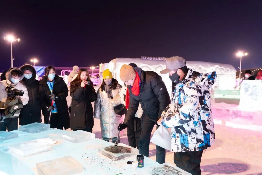 哈尔滨冰雪大师、原冰灯博览中心副主任、哈尔滨大工匠、冰版画创始人朱晓东现场教授学员们冰版画制作。