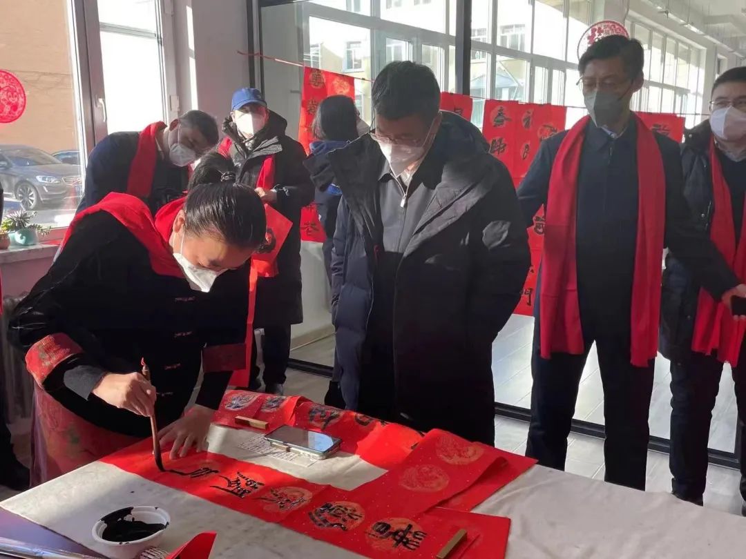 孙立军为参加活动的教职工代表、社区工作人员和居民代表送春联和福字,并送上新春祝福和美好祝愿。大家手捧着充满喜庆、吉祥、祝福的春联和福字,纷纷表示,这是送到心坎里的新春祝福,既温暖人心又令人格外开心,充分感受到中华传统文化独有的艺术魅力。
