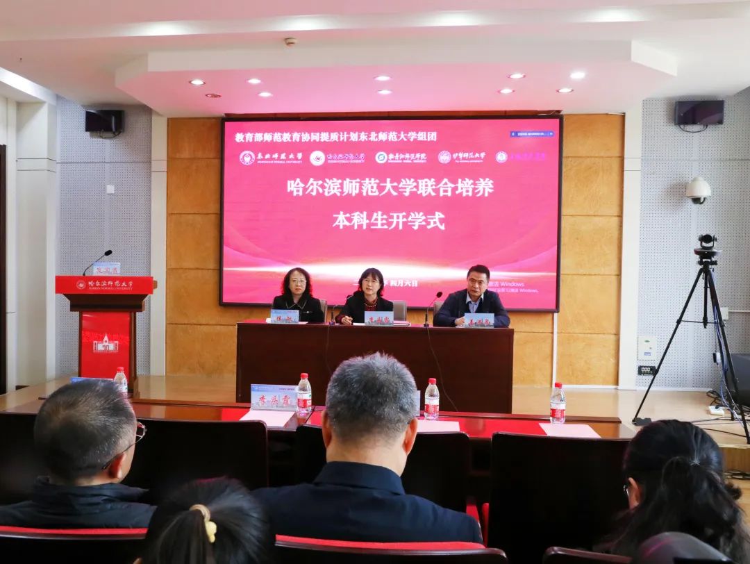 (李苗/文)为深入贯彻落实教育部办公厅《关于实施师范教育协同提质计划的通知》精神,积极推进教育部师范教育协同提质计划DG3本科生联合培养项目顺利实施,4月6日下午,学校以线上线下相结合的方式,召开了教育部师范教育协同提质计划东北师范大学组团哈尔滨师范大学联合培养本科生开学式。我校党委副书记李庆霞、牡丹江师范学院副校长程爽、伊犁师范大学副校长居来提·沙比尔、白城师范学院副校长康建强、东北师范大学教务处副处长王向东,54名联合培养本科生,教务处班子成员、相关学院领导及教师代表参加会议。会议由教务处处长姜洪泉主持。