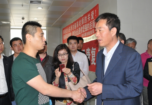 5月19日上午9时30分,校党委副书记王广明,党委常委、工会主席张国昭,及党委宣传部、学生工作处、校团委、校工会等相关部门主要负责人与师生代表赴哈尔滨医科大学附属第一医院住院部,将50万零20元爱心捐款送交佳木斯市慈善总会设立的“张丽莉见义勇为基金”。这是该基金迄今所收到的400余万捐款中数额最大的一笔集体捐款。