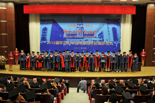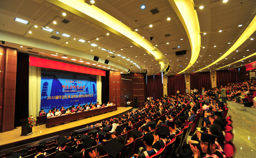 6月27日下午,我校2012届毕业生毕业典礼暨学位授予仪式在松北校区科技会堂隆重举行。学校党政领导出席仪式。校学位评定委员会成员、教师代表、2012届博士、硕士、本科、专科和留学生毕业生代表、获奖毕业生代表及在校生代表参加了仪式。典礼仪式由党委书记主持。