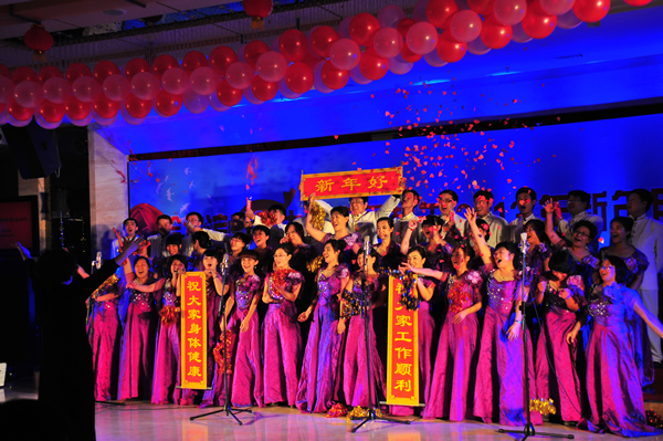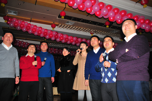 在现场气氛的感染和观众的强烈要求下,党委书记、蒋晶洁即兴为大家表演了二重唱《敖包相会》,两位领导高亢嘹亮的歌声更是将联欢会推向了高潮。