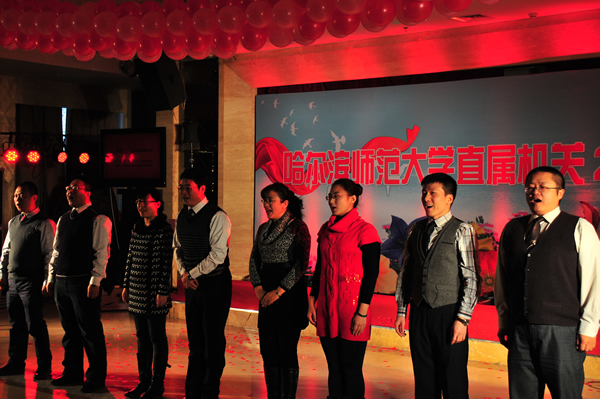 联欢会在财务处全体《祖国不会忘记》雄浑有力的合唱声中拉开帷幕。嘹亮的歌声,昂扬的斗志,充分展示了财务处干部职工信心百倍,干好工作的决心;机关干部原创文艺作品,更是将联欢会推向了一个又一个高潮。由机关党委书记祝小平创作的三句半《说着看》,学校办公室主任苑芳江等人表演的电影配音串烧《机关干部是怎样炼成的》,发展规划处副处长孙树勇创作的诗歌《走向辉煌》,档案馆徐丽娜创作的诗歌《兰台颂》等节目,深情回顾了几年来学校的发展历程,讴歌了学校教学科研管理等工作多年来所取得的辉煌成就,从不同侧面展现了机关干部爱校如家、以校为荣的炽热情怀。国际合作与交流处全体表演的舞蹈《最炫民族风》,校医院手语表演《感恩的心》,纪委监察处、审计处全体联合表演的小合唱《东方之珠》,学生就业指导处全体表演的小合唱《我们走在大路上》,党委宣传部全体表演的配乐诗朗诵《我的祖国》以及人事处、保卫处、校友工作办公室、学生工作处等单位表演的节目都充分展现了机关干部憧憬着在新的一年里拥抱生活,开拓人生的壮志豪情。
