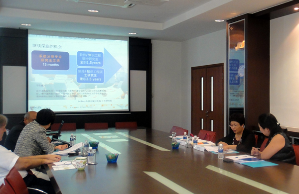 在新加坡国立大学,臧淑英会见了研究生项目主任和华·霍森与新加坡电子政府领导力中心主任古码,同对方探讨了系统分析师研究生文凭课程、知识工程与软件工程硕士学位课程的申请条件、入学考试安排、教学管理、成绩考核、毕业要求等问题。双方还就短期教师培训进行了深入的交流。会后,我校代表团还考察了该学院的教学设施。