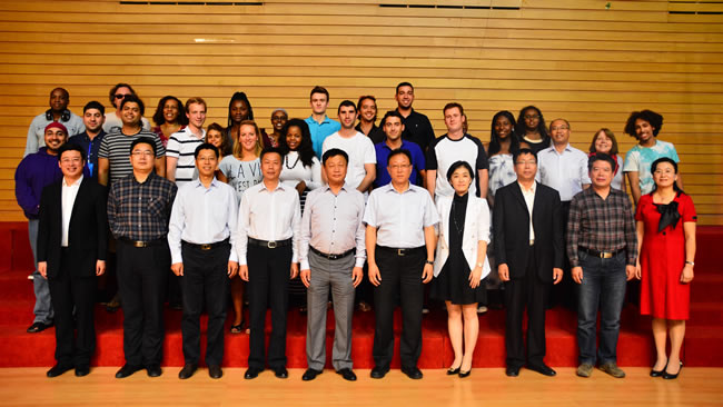 国际文化交流学院院长刘柏清介绍了2013年秋季学期留学生教育的基本情况,并宣布获得2013-2014年度国家优秀自费来华留学生奖学金获奖名单、2013级孔子学院奖学金生名单。张大铸和教务处处长郭崇林分别在开学典礼上致辞。哈萨克斯坦留学生米沙代表在校留学生发言。