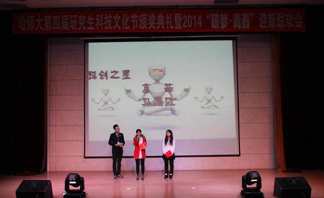 (刘勇/文)12月3日,我校在江北校区科学会堂举办了第四届研究生科技文化节颁奖典礼暨2014“研梦·青春”迎新联欢会。副校长臧淑英出席并讲话,机关有关部处领导、研究生学院全体老师、各培养单位领导、教务秘书、兼职辅导员、研究生代表600余人参加了本次活动。