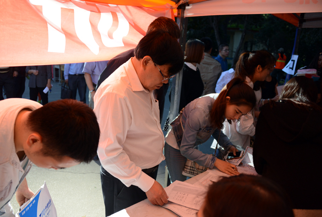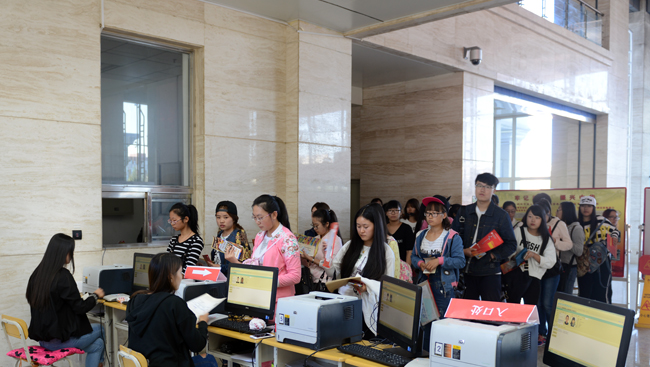 当接新生的校车驶入校园时,来自全国各地的2015级新生与学生家长受到我校接待人员的热烈欢迎。接新生工作井然有序,负责迎接新生的各部门及各院系师生都以饱满的精神状态和热情周到的工作态度引导学生及家长办理各种入校必备的手续。